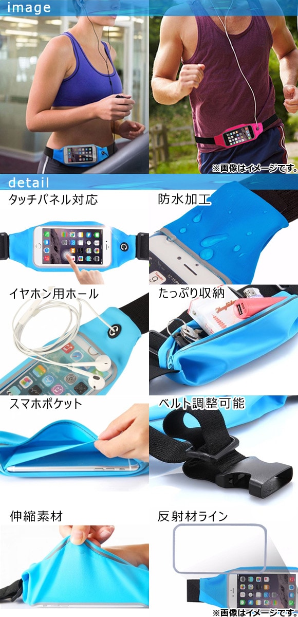 スマホウエストバッグ タッチパネル対応 ランニングなどに! 選べる9カラー 選べる2サイズ AP-TH371