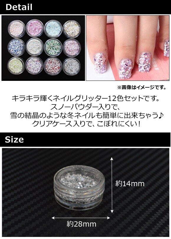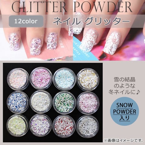 ネイルグリッター 12カラー! スノーパウダー入り 冬ネイルにおすすめ♪ AP-TH380 入数:1セット(12個)