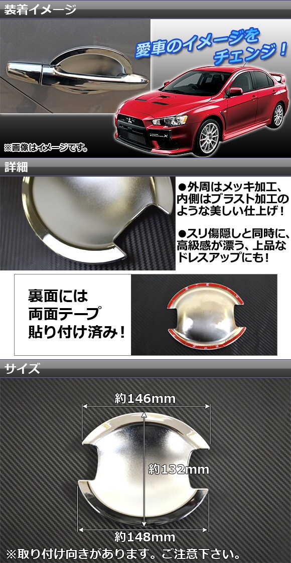 メッキドアハンドルインナーカバー ミツビシ アウトランダー CW5W/CW6W 2008年~2014年 入数:1セット(4個)