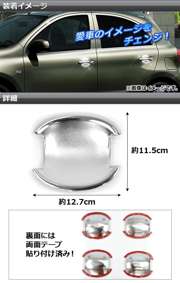 ドアハンドルカバー ハンドルカバー カバー ガード ドアノブカバー ドアノブ ハンドル メッキカバー ドアハンドルボールカバー ボウル ボール 皿 インナー 取っ手 ノブ ガーニッシュ リム トリム モール プロテクター プロテクト 保護 キズ防止 傷付き防止 防止 キズ 傷 外装 ドレスアップ エクステリア メッキ パーツ 銀 クローム シルバー