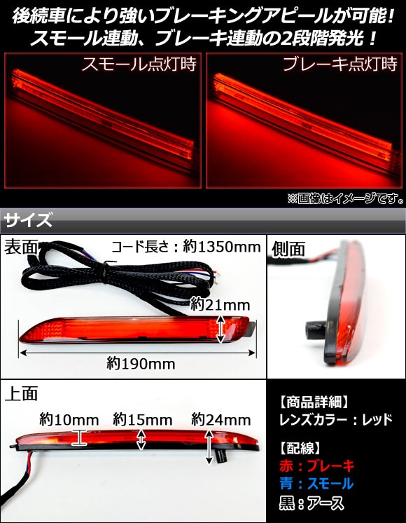 リフレクター レフレクター リフレクターランプ リフレクターライト リアフォグランプ LED ランプ ライト リアバンパー バックランプ リアフォグ テイルランプ テイルライト テールライト ブレーキランプ ストップランプ バックライト HL10T18B 照明 電灯 電装 リア リヤ リアー リヤー rear 背後 後方 後部 後 尾灯 反射板 ライトバー テール テイル バック ブレーキ スモール 2段階発光 2段階 レッド レンズ 交換 連動 点灯 発光 外装 外装パーツ パーツ ドレスアップ カスタム カスタマイズ 装飾 装飾パーツ アクセサリー アクサセリ