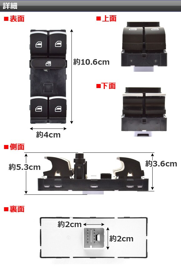 パワーウィンドウスイッチ フォルクスワーゲン キャディ 2004年~ 10ピンタイプ 運転席用