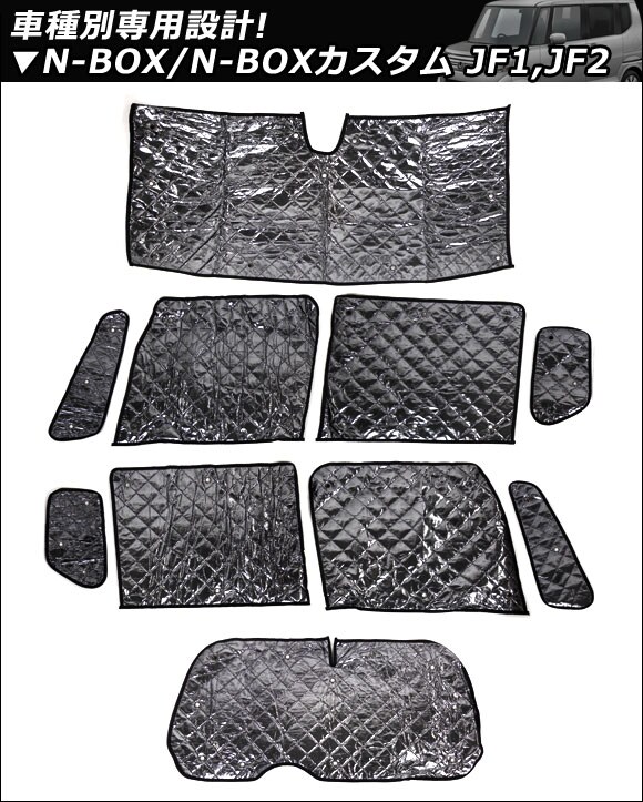 サンシェード(日除け) ホンダ N-BOX/N-BOXカスタム JF1,JF2 自動ブレーキ有り車 2011年12月~ ブラック 5層構造 入数:1台分フルセット(10枚) AP-SD003