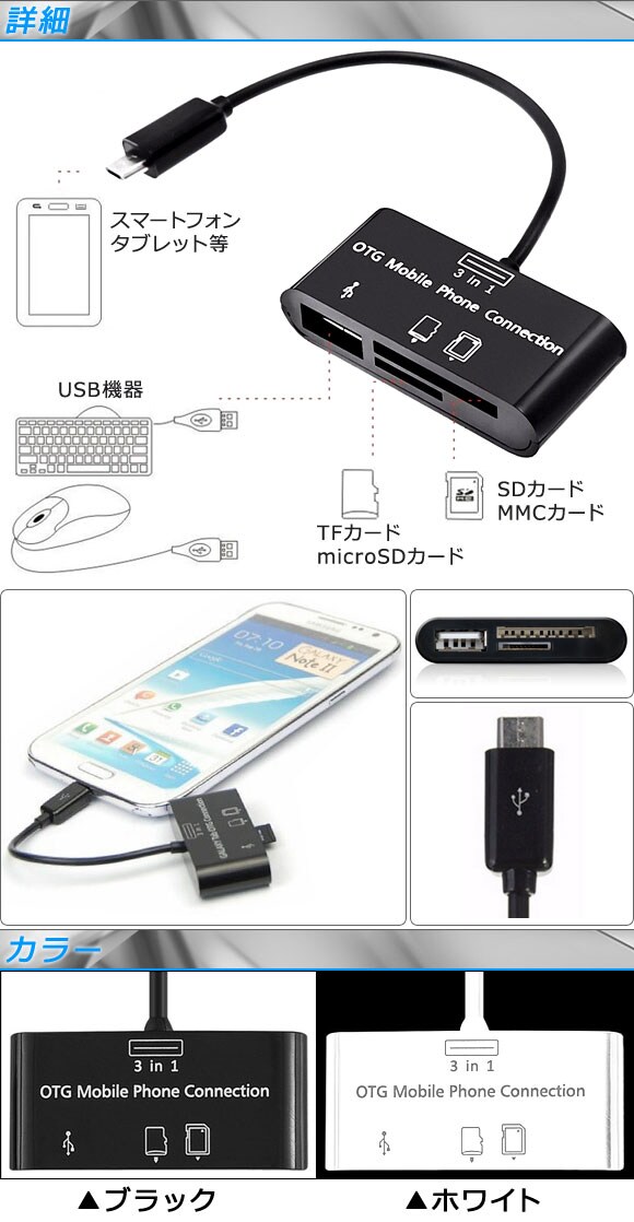エクスペリア XPERIA Z Z1 Z2 Z3 Mini Z4 カード リーダ メディアリーダー アダプタ コネクタ USBホスト 接続 変換 転送 取り込み USB マイクロ micro ポート SD SDメモリ microSD マイクロSD TF MMC メモリースティック フラッシュメモリ USBメモリ マウス キーボード カメラ デジタルカメラ デジカメ 写真 インストール 周辺機器 携帯 モバイル スマートフォン スマートホン Nexus ネクサス Galaxy ギャラクシー Android アンドロイド スマフォ スマホ タブレット