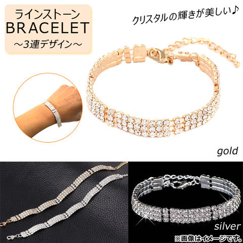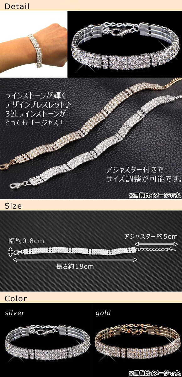 ラインストーンブレスレット 3連デザイン クリスタル アジャスター付きで調整可能 選べる2カラー AP-TH498