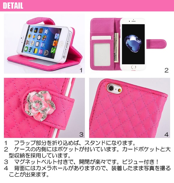 iPhoneケース iPhoneカバー アイフォンケース アイフォンカバー スマートフォンケース スマートホンケース スマホケース 手帳型スマホケース 手帳型ケース 二つ折りケース ダイアリーケース フリップケース ケース カバー アップル Apple アイフォン iPhone スマホ 4 4s 5 5s SE 5C 6 6s 6Plus 6sPlus 7 7Plus 保護 ガード プロテクト キズ防止 キルト ビジュー 花 花柄 フラワー 収納 カード カードホルダー スタンド マグネット 黒 紫 赤 薔薇 青 白