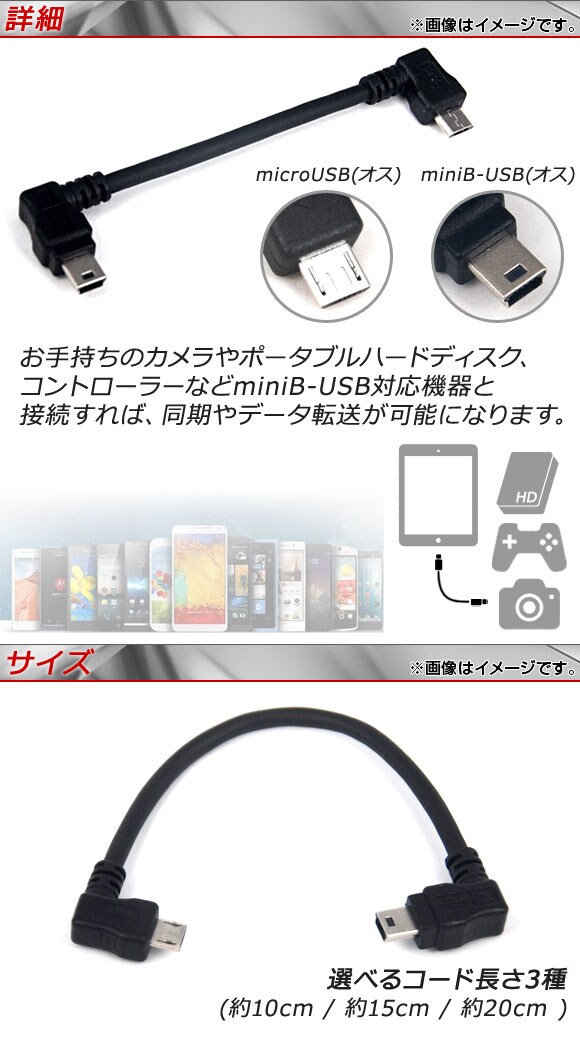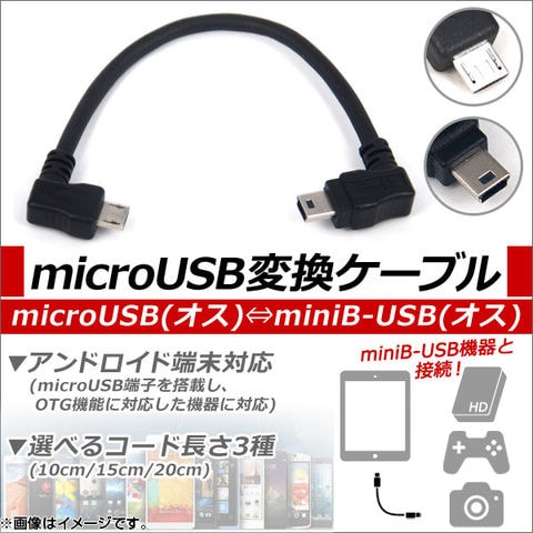 microUSB/miniB-USB変換ケーブル アンドロイド対応 OTG 直角タイプ 選べる3サイズ AP-TH538