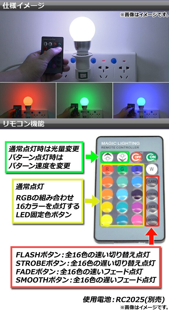 電球用マルチリモコン RGB16色点灯用 紛失、破損の方必須! AP-TH527