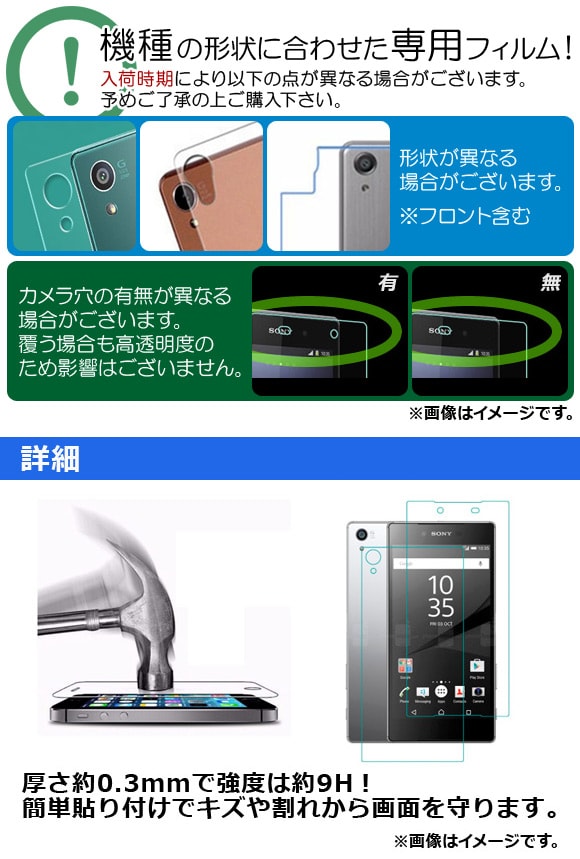 両面保護ガラス Sony Xperia 強度9H 厚さ0.3mm 選べる20適用品 入数:1セット(2枚) AP-TH560