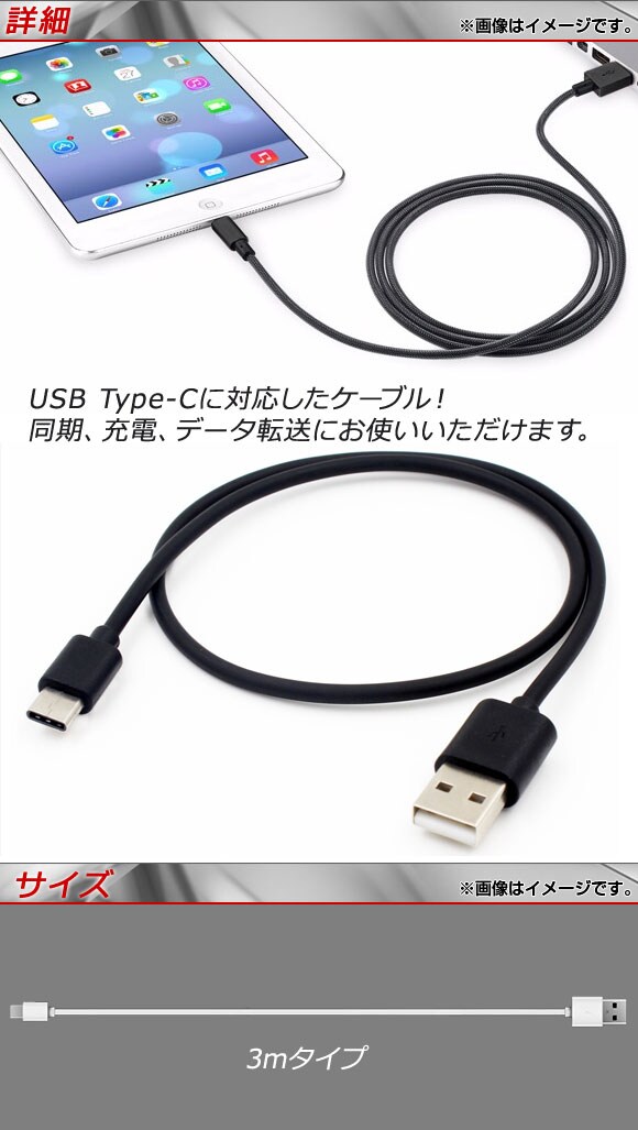 USB2.0/USB Type-C 変換ケーブル 3m 同期/充電/データ転送に! 選べる2カラー AP-TH590