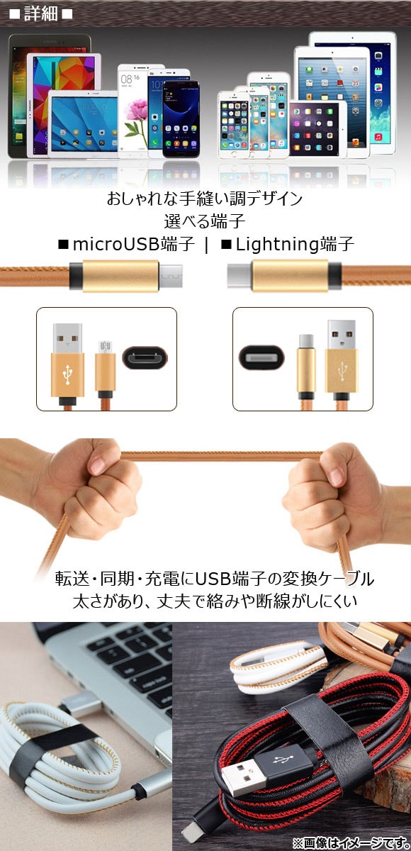 USBケーブル ■iPhone/iPad/iPod用 ■microUSB 1m 手縫い調 丈夫で強い! 選べる12カラー 選べる2タイプ AP-TH567