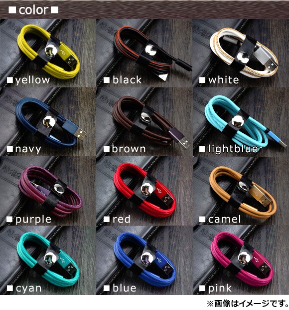 黒 BLACK 白 WHITE 赤 RED 黄 YELLOW 紫 PURPLE 紺 NAVY 茶 BROWN CAMEL 青 LIGHT BLUE マイクロUSB android アンドロイド iPhone/iPad/iPod用ケーブル iPhone アイフォン