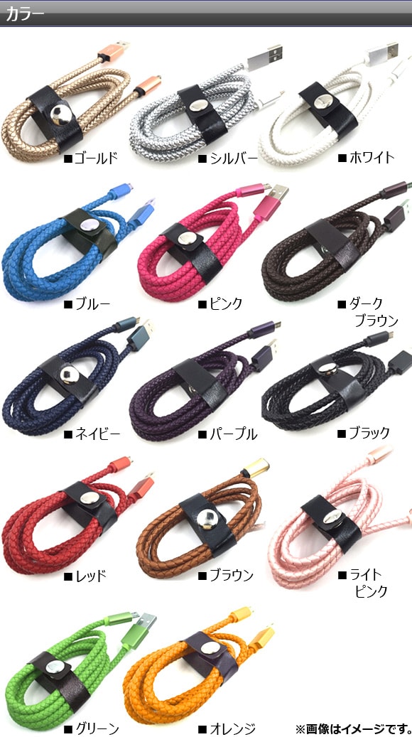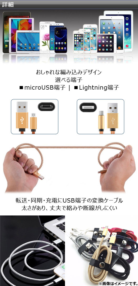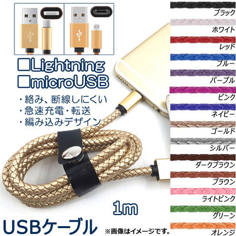 USBケーブル ■iPhone/iPad/iPod用 ■microUSB 1m 編み込み 丈夫で強い! 選べる14カラー 選べる2タイプ AP-TH568