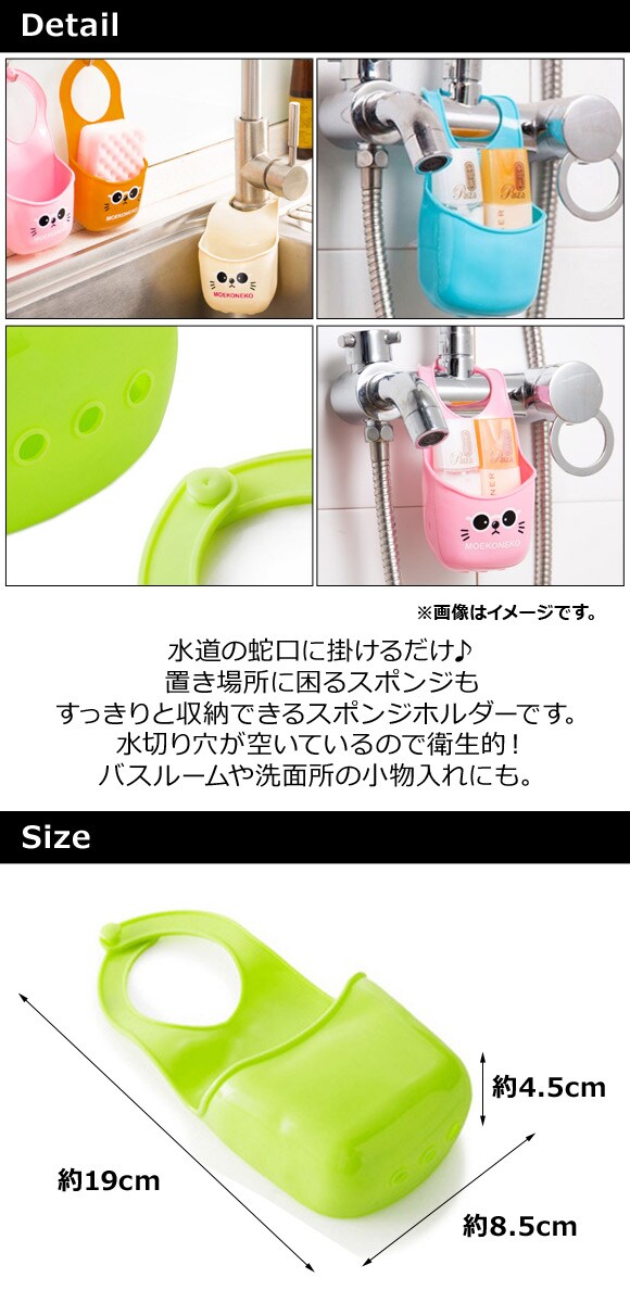 水道の蛇口に掛けるだけ♪置き場所に困るスポンジもすっきりと収納できるスポンジホルダーです。