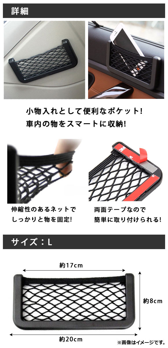 車内収納 小物入れポケット Lサイズ 伸縮ネット 両面テープで簡単取り付け AP-TH594