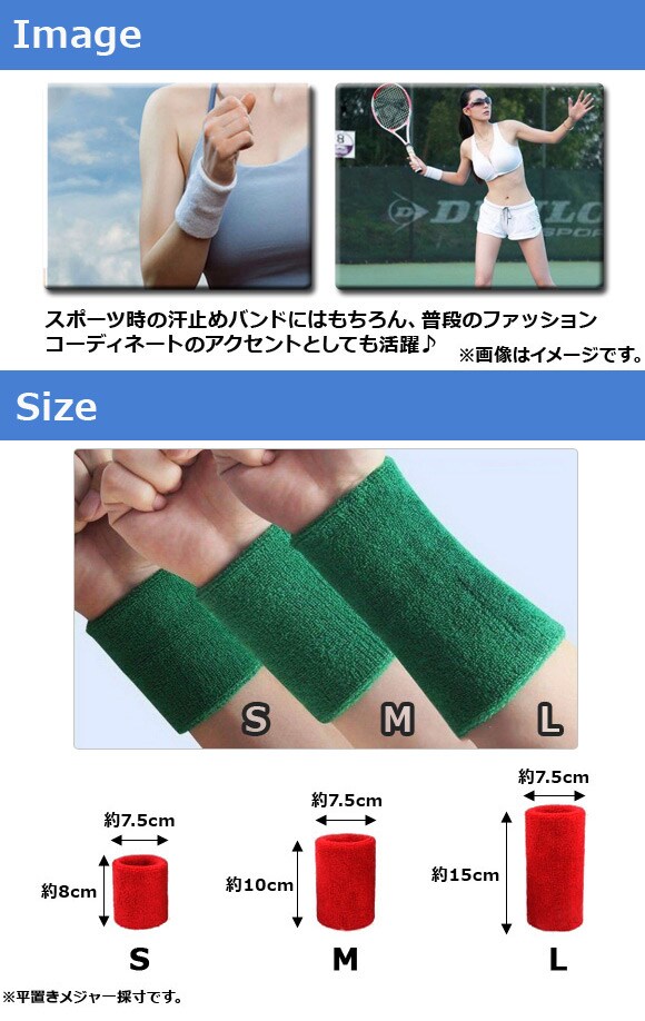 パイル地のスポーツ用リストバンド♪肌ざわりが良く、しっかりと汗を吸収します。