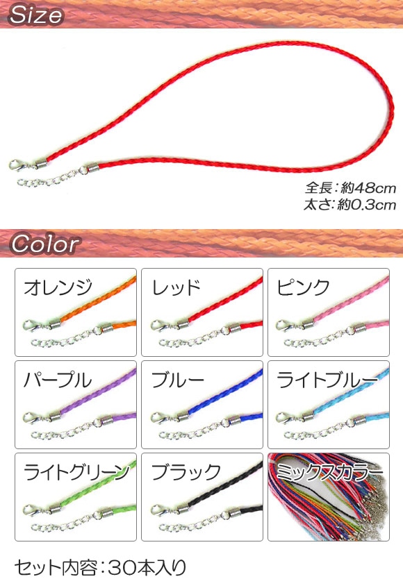 ネックレスコード PUレザー編み ハンドメイドのアクセサリー作りに♪ 選べる9カラー AP-TH628 入数:1セット(30本)