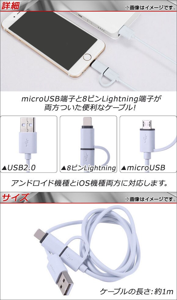 microUSB/8ピンiPhone/iPad/iPod用変換ケーブル シンプルデザイン アンドロイド/iOS変換 同期、充電、データ転送に! AP-TH631
