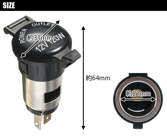 DC12V 120W キャップ付き バイクや車の電源確保に!