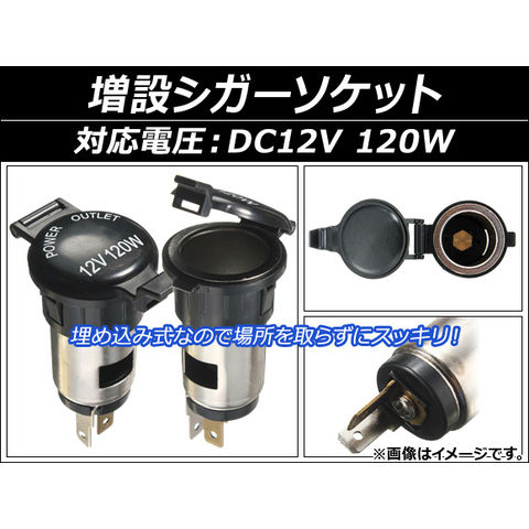 増設シガーソケット DC12V 120W キャップ付き バイクや車の電源確保に! AP-EC070