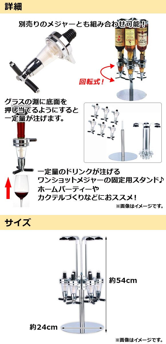 ワンショットメジャースタンド 回転式 6ボトルタイプ 1杯のドリンクをおしゃれに注げる♪ AP-TH642