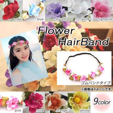 フラワーヘアバンド ゴムバンドタイプ パーティーや発表会・ダンスに♪ 選べる9カラー AP-TH659