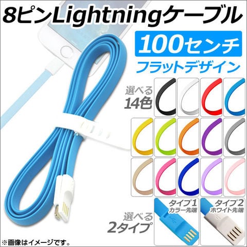 8ピンiPhone/iPad/iPod用ケーブル 100センチ フラットデザイン 充電、データ転送に! 選べる14カラー 選べる2タイプ AP-TH690