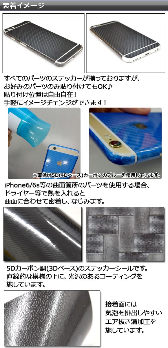 スキンシール 5Dカーボン調(3Dベース) iPhone用 背面タイプ2 保護やキズ隠しに! 選べる20カラー iPhone5,6,7など AP-5TH891
