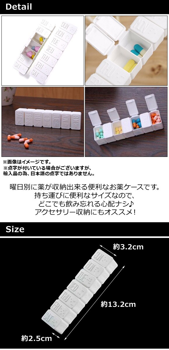 お薬ケース 薬ケース 薬入れ お薬入れ 薬箱 ピルケース サプリメントケース サプリケース タブレットケース メディカルケース 薬 お薬 くすり クスリ ピル サプリメント サプリ タブレット 錠剤 メディカル ケース 入れ物 箱 ボックス 容器 小物入れ アクセサリーケース アクセサリー入れ 収納ケース 収納 一週間 1週間 ウィークリー 曜日別 小分け 仕分け 整理 管理 コンパクト 携帯 持ち運び 旅行 便利 簡単 シンプル おしゃれ オシャレ お洒落 かわいい 小物 雑貨 アクセサリー パーツ 飲み忘れ防止 防止 予備 白 ホワイト 点字