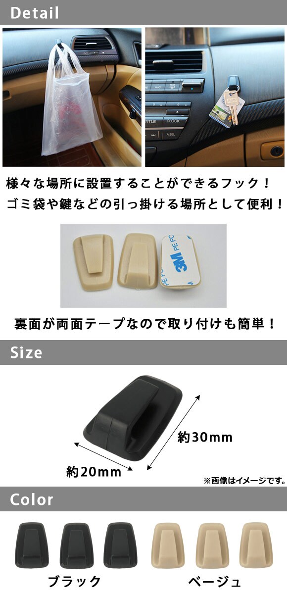 車載ホルダー 様々な場所に取り付けられるフック! 両面テープで取り付け簡単 選べる2カラー 入数:1セット(3個) AP-AS037