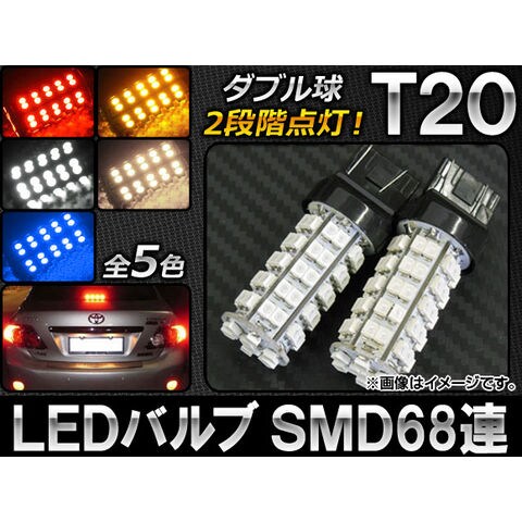 LEDバルブ T20 ダブル球 2段階点灯 68連 12V 選べる5カラー 入数:2個 AP-LB032