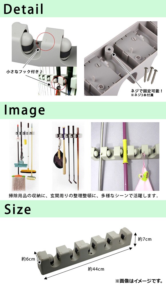 壁掛けホルダー モップやほうきの収納に! 場所をとらずに整理整頓 5連タイプ AP-TH720
