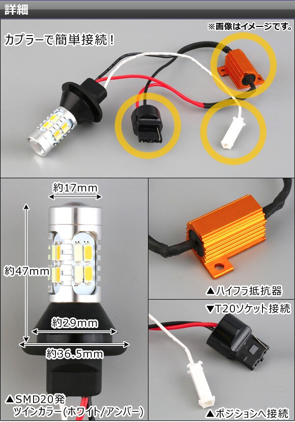 LEDウインカーポジションキット ツインカラー(ホワイト/AM) T20 汎用 SMD 20連 ハイフラ抵抗器付き AP-LB046