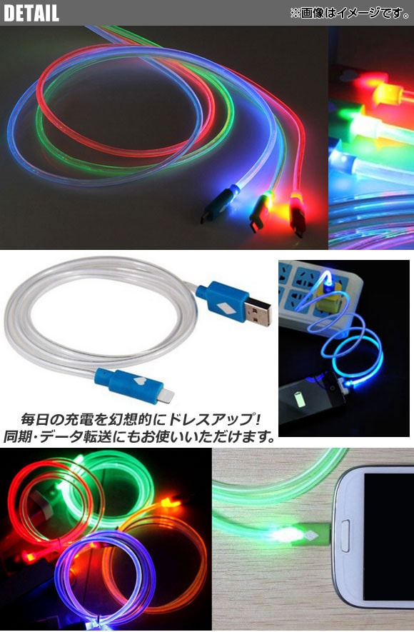 暗闇で美しく光る! 充電/同期/データ転送に!