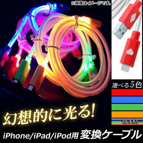 iPhone/iPad/iPod用変換ケーブル 暗闇で美しく光る! 充電/同期/データ転送に! 選べる5カラー AP-TH738