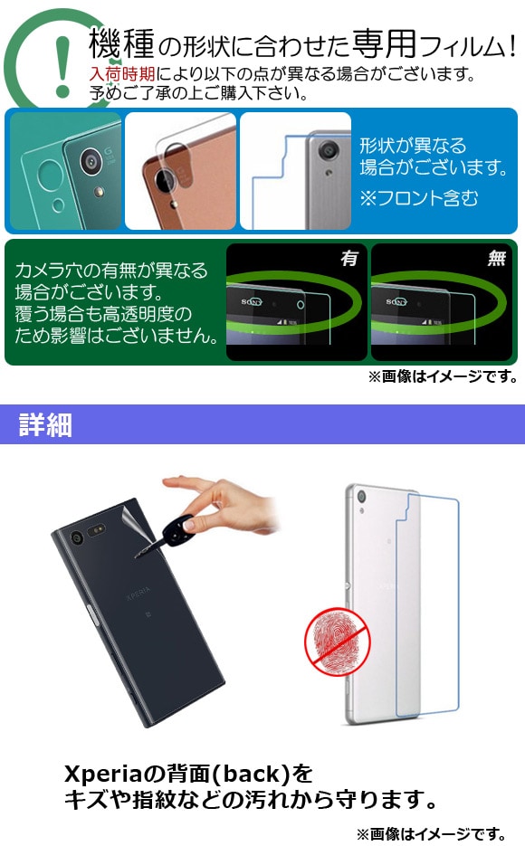 背面保護フィルム 光沢 Sony Xperia PET素材/バック専用 選べる20適用品 AP-TH780