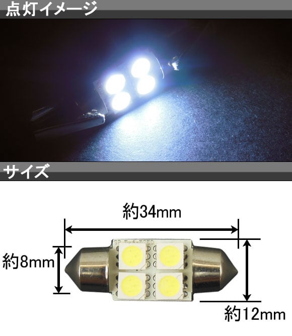 3chip 汎用 シングル LED ヒューズ球 タル型 樽型 両口金 まくら球 枕球 5050 バルブ 白 white 4発 4灯 4個 34mm 34 電球 発光 ライト ランプ T10×34 照明 センター マップ バニティ バニテイ バイザー カーテシ フット ラゲッジ トランク フロント T10 automobile motorcar オートモービル モーターカー カー 車 自動車 車両