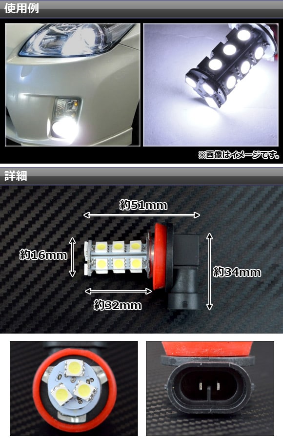 LED バルブ LEDライト ライト LEDランプ ランプ ヘッドライト ヘッドランプ 前照灯 フォグランプ フォグライト フォグ フオグ 霧灯 昼間点灯 デイライト デイランプ デーライト デーランプ デイタイムライト デイタイム 18発 18個 18灯 エイチ11 エイチ8 12ボルト ホワイト 白 WHITE 電球 電灯 照明 発光 フロント front 前 前面 正面 外装 エクステリア ドレスアップ 汎用 兼用 改造 高輝度 360° 360度 全方位 広範囲 無極性 automobile motorcar オートモービル モーターカー カー 車 自動車 車両