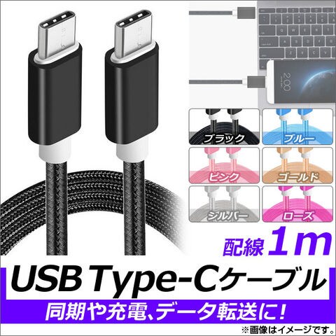 USB Type-Cケーブル 1m オス-オス ナイロン編みケーブル 同期/充電/データ転送に! 選べる6カラー AP-TH822