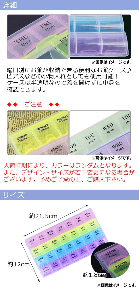 お薬ケース 薬ケース 薬入れ お薬入れ 薬箱 ピルケース サプリメントケース サプリケース タブレットケース メディカルケース 薬 お薬 くすり クスリ ピル サプリメント サプリ タブレット 錠剤 メディカル ケース 入れ物 箱 ボックス 容器 小物入れ アクセサリー入れ 収納ケース 収納 一週間 1週間 ウィークリー 曜日別 小分け 仕分け 整理 管理 コンパクト 携帯 持ち運び 旅行 便利 バイカラー おしゃれ オシャレ お洒落 かわいい ファッション 小物 雑貨 アクセサリー パーツ 飲み忘れ防止 防止