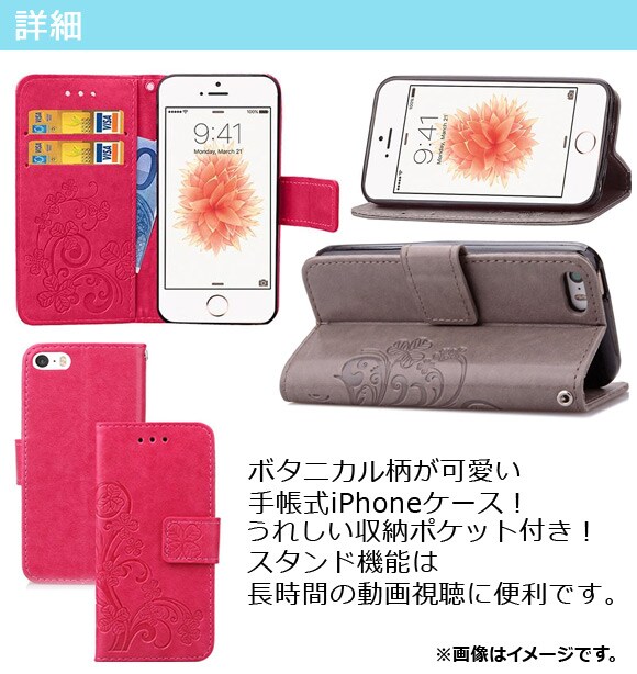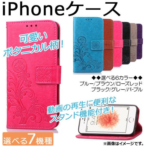 iPhoneケース 手帳型/スタンド PUレザー お洒落なボタニカル柄♪ 選べる6カラー 選べる7サイズ AP-TH873