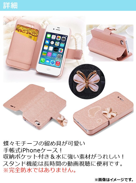 蝶々モチーフの留め具がとってもキュートな手帳型iPhoneケース!