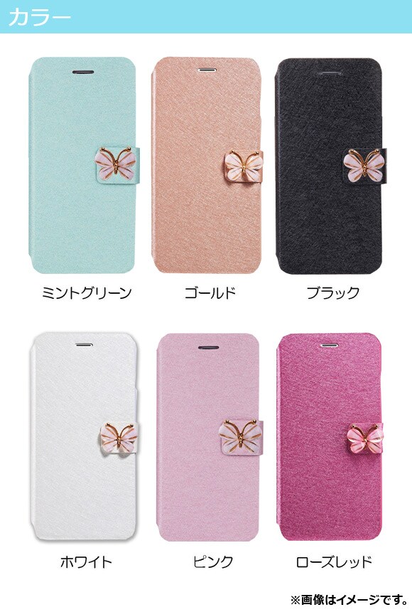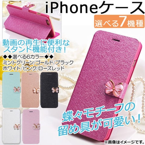 iPhoneケース 手帳型/スタンド 蝶々モチーフの留め具が可愛い♪ 選べる6カラー 選べる7サイズ AP-TH874