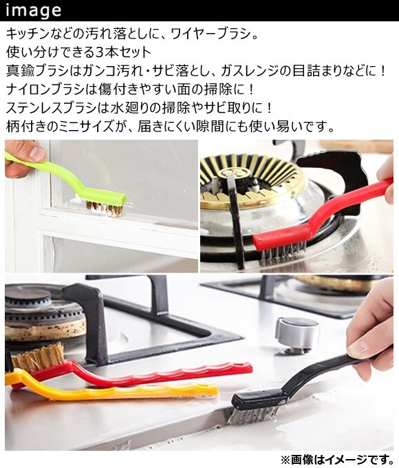 キッチン ワイヤーブラシ 真鍮・ナイロン・ステンレス 使い分けできる3本セット ガンコ汚れを除去! 入数:1セット(3本) AP-TH883