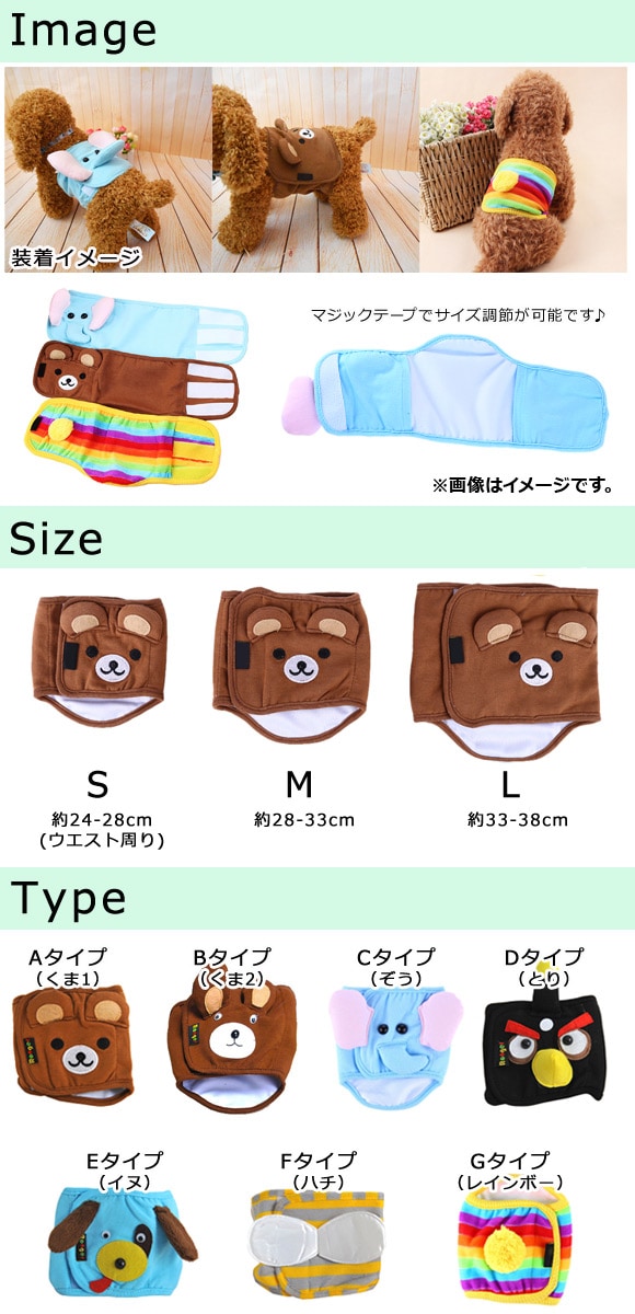 犬用マナーベルト アニマルフェイス オシッコ対策 しつけ 選べる7デザイン 選べる3サイズ AP-TH867