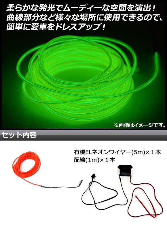 有機ELネオンワイヤー 5m プラス/マイナス配線タイプ 選べる10カラー AP-ELWIRE500-PM