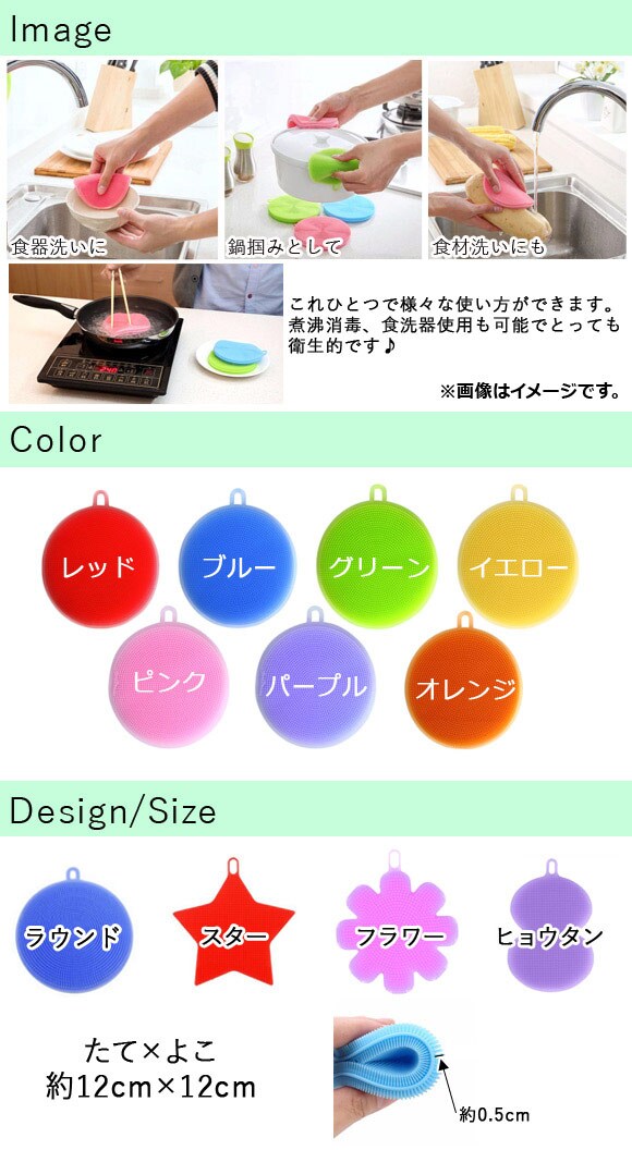 シリコンスポンジ 楽々食器洗い♪ 煮沸消毒、食洗器OK 衛生的 選べる7カラー 選べる4デザイン AP-TH894のレビュー