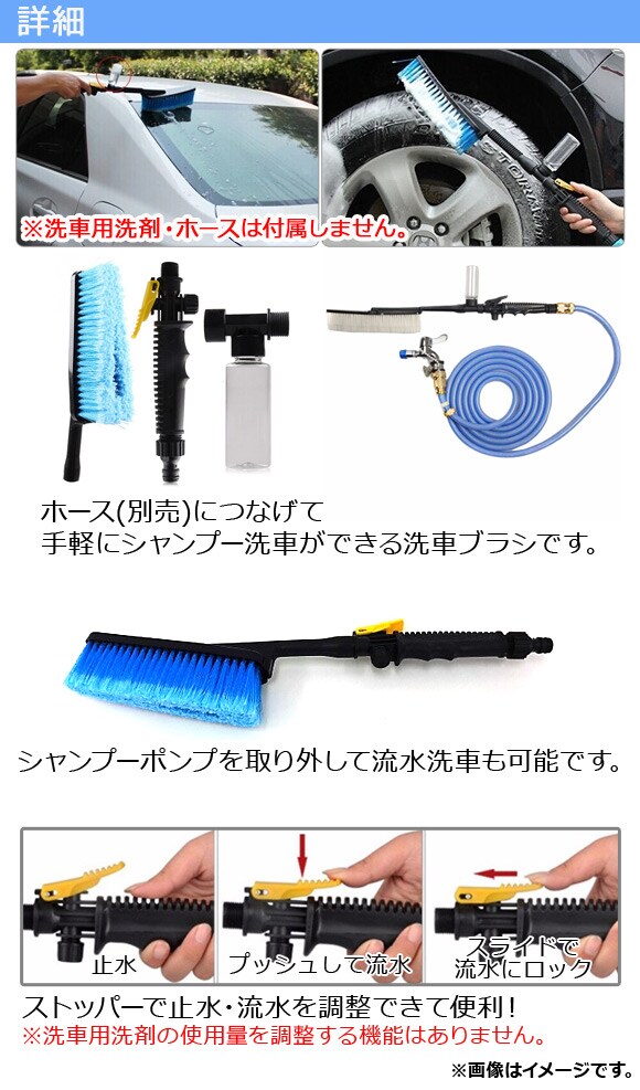 洗車ブラシ 脱着可能シャンプーポンプ 止水・流水スイッチ付き 自宅で手軽にシャンプー洗車♪ AP-TH903