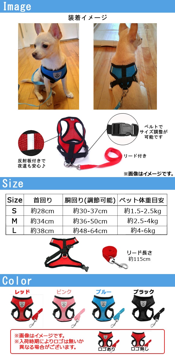 メッシュハーネス リードセット お散歩を快適に 通気性抜群♪ 選べる4カラー 選べる3サイズ AP-TH916