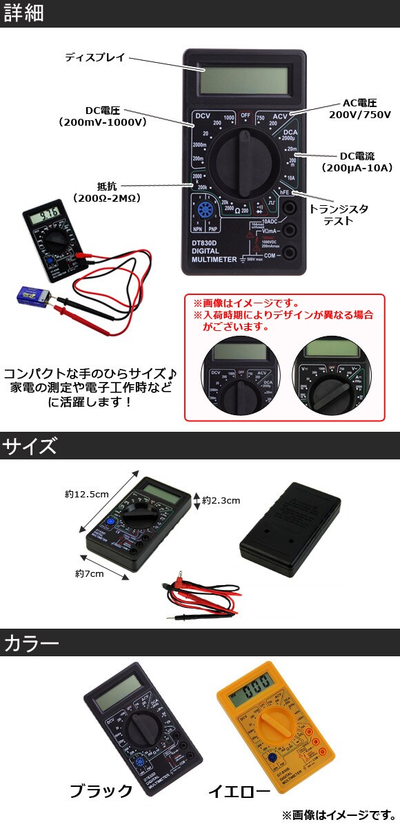 家電製品や乾電池の測定に、DIYや電子工作に、様々なシーンで活躍するデジタルマルチテスターです。